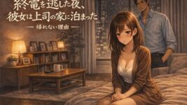 OL 【18禁エロマンガ】終電を逃した夜、彼女は上司の家に泊まった ―帰れない理由―(d_748418) OLオフィス・職場上司夜の灯る部屋寝取られ・NTR寝取り・寝取られ・NTR巨乳成人向け浮気男性向け脚萌え退廃・背徳・インモラル
