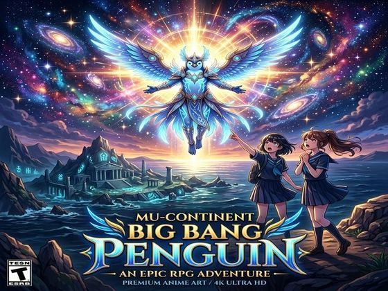 放課後のチャイム。 それは宇宙の始まりを告げるビッグバンの号砲だった。 突如として現代に浮上した超古代文明「ムー大陸」に 迷い込んだ二人の女子校生。 そこで彼女たちを待っていたのは、 人語を解する神々しいアデリーペンギンたち。 大陸の沈没を止めるため、 彼女たちはルーズソックスを聖遺物へと持ちえる。 ビッグバン・チャイムを鳴らし、 宇宙の特異点を守り抜…